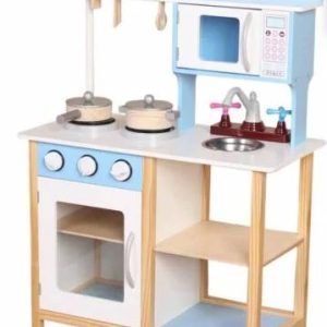 מטבח עץ מעוצב בצבע תכלת במיוחד לילדים כולל: כיור, ברז, כיריים,...